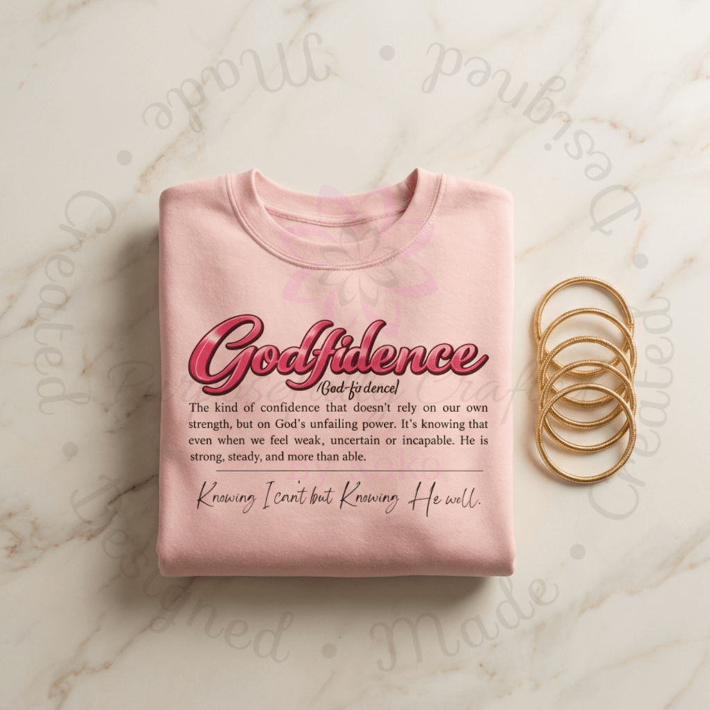 Swap out the anxiety for some Godfidence. This ultra-soft pink crewneck isn't just a cozy layer; it's a statement piece that reminds you exactly where your strength comes from. Perfect for quiet times, Sunday brunch, or just running errands covered in grace.